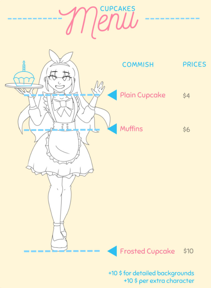 +10 $ for detailed backgrounds and +15 $ per extra character